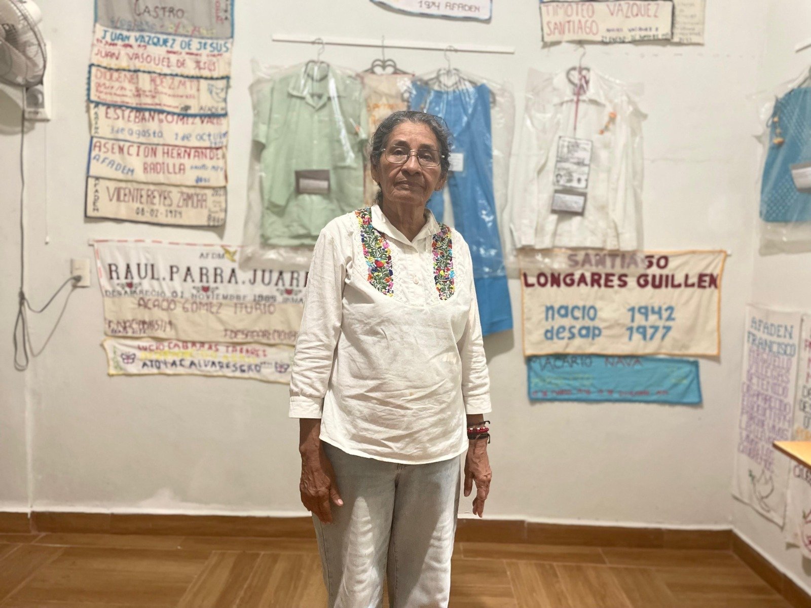 Sin embargo, Tita Radilla se toma unos minutos para explicar —a quien lo pide— en qué consiste el museo. Hace el recorrido una y otra vez. Explica que son tres exposiciones permanentes. La primera: Voces acalladas, vidas truncadas, dedicada a los campesinos y campesinas, estudiantes, amas de casa, combatientes, familiares de combatientes que fueron asesinados y desaparecidos en medio del avasallamiento del Ejército por terminar la guerrilla de Lucio Cabañas.
