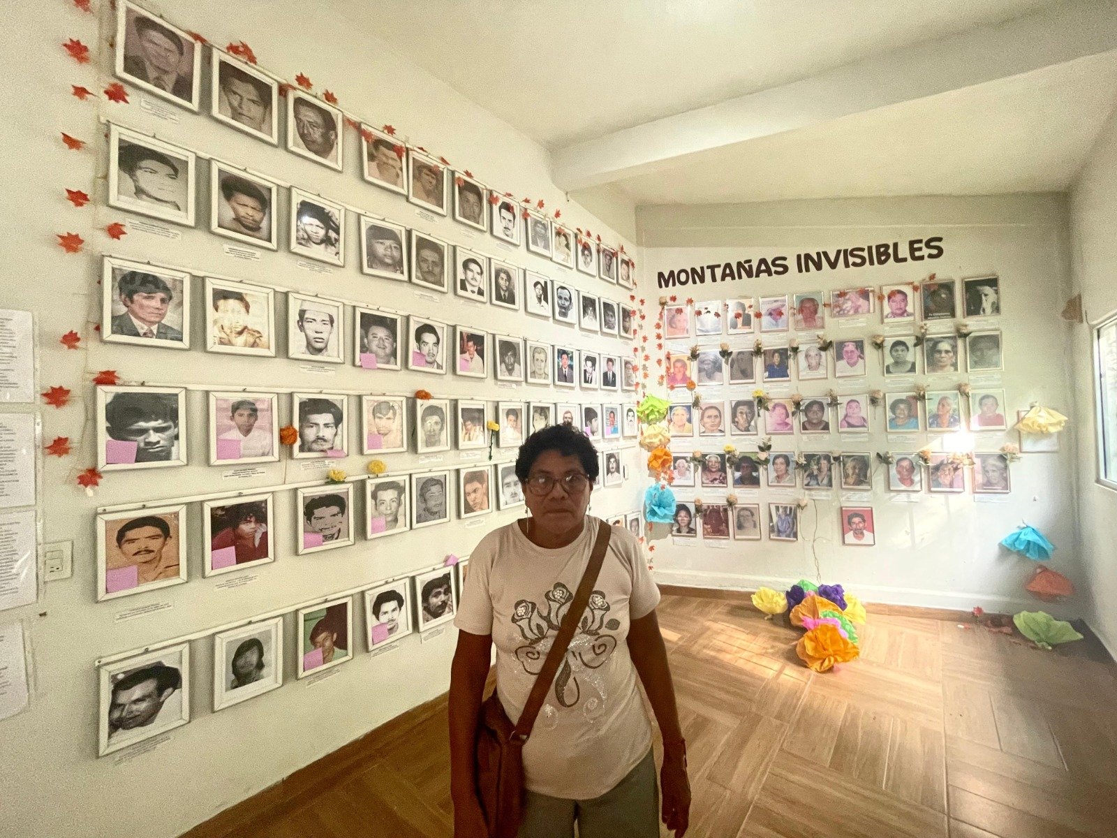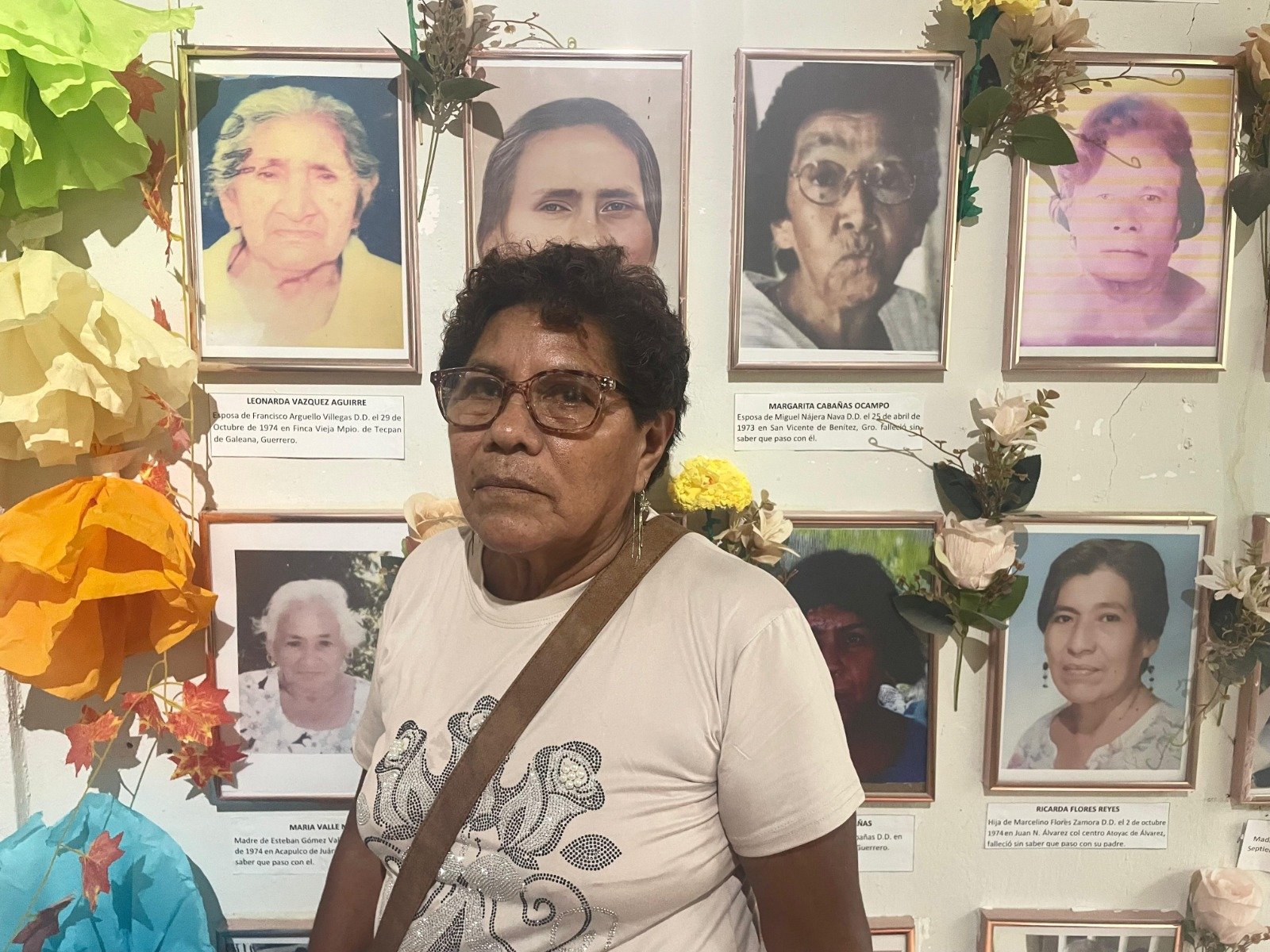 María Argüello Vázquez está parada frente a la tumba de Esteban Mesino y Lino Rosas, combatientes que murieron a lado del profesor Lucio Cabañas Barrientos, en El Otatal, en la sierra de Tecpan, el 2 de diciembre de 1974, tras un enfrentamiento con el Ejército. En ese mismo ataque, fue detenido por militares Marcelo Serafín Juárez, un adolescente de 14 años, que hasta ahora está desaparecido.