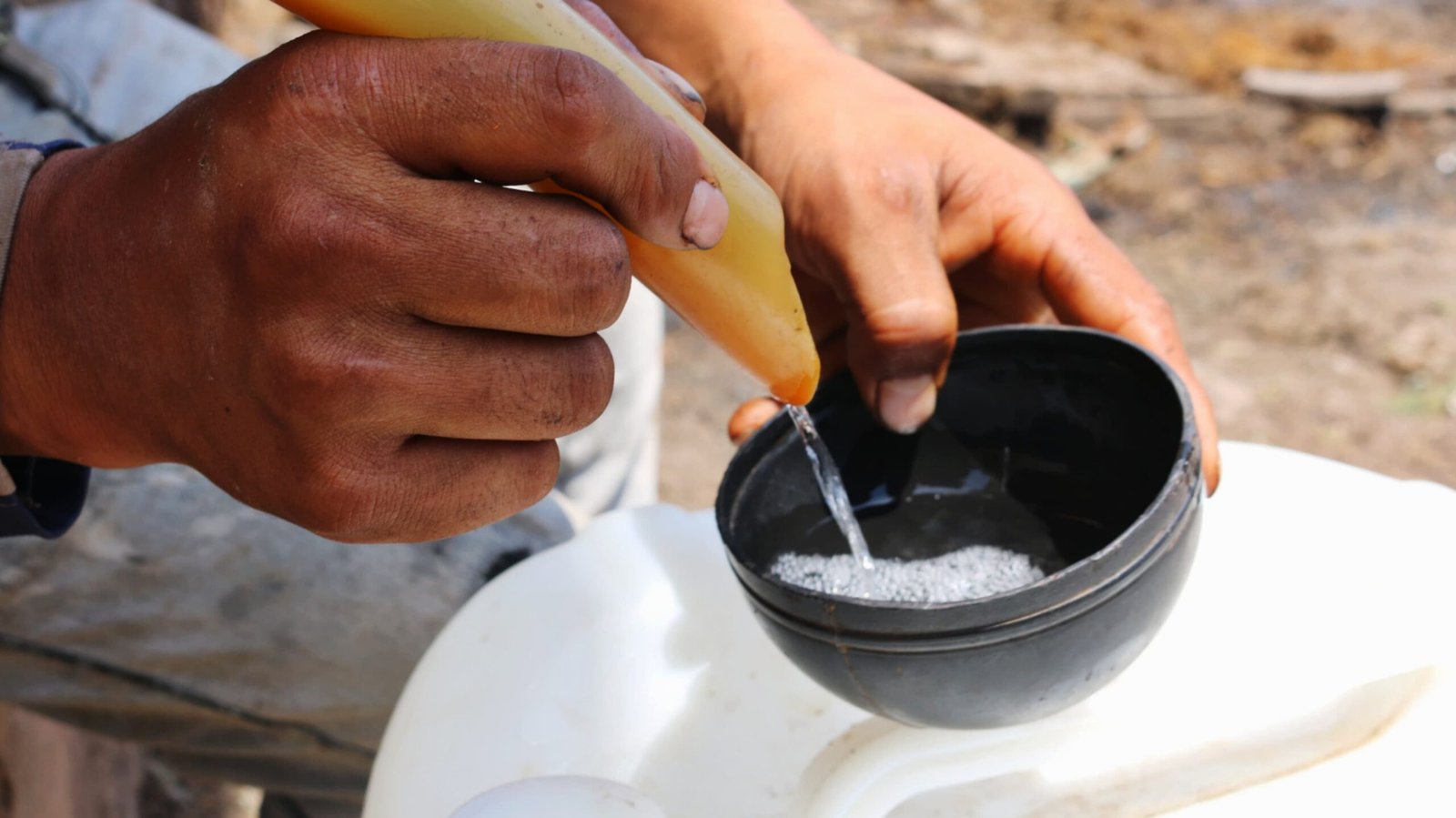Una hora después, un adolescente anuncia: “Ya está saliendo”. El mezcal cae por un chorro constante y pequeño a un garrafón. El joven maestro mezcalero verifica con un alcoholímetro de carrizo los grados y el sabor.
