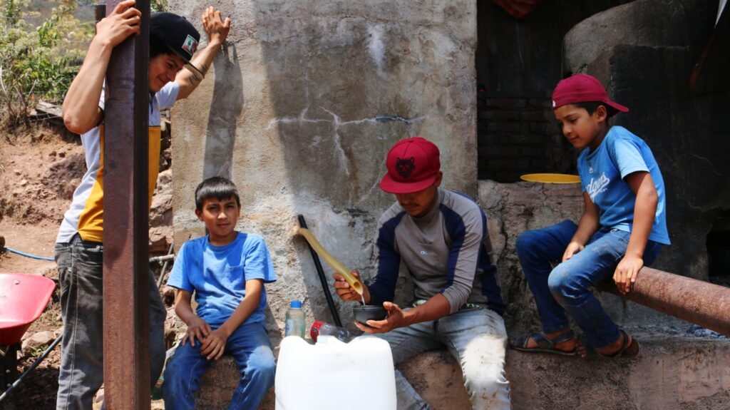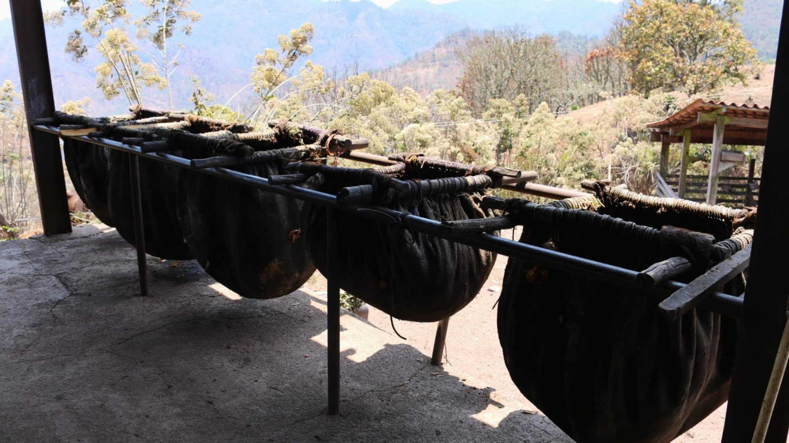 “De hecho, no podemos ir a vender porque no hay quien compre y, si lo compran, lo pagan barato. No sacamos lo que invertimos. Por ejemplo, el que saco aquí, unos dos mil o tres mil litros, pues ahí los dejo y allá por diciembre los ando acabando, pero por ‘litreados’: cinco, diez, veinte litros de vez en cuando. Por ahí va teniendo algo de dinero para comprar los frijoles, aunque sea, porque para más, no”, concluye Agustín mientras le da una calada a su cigarrillo.