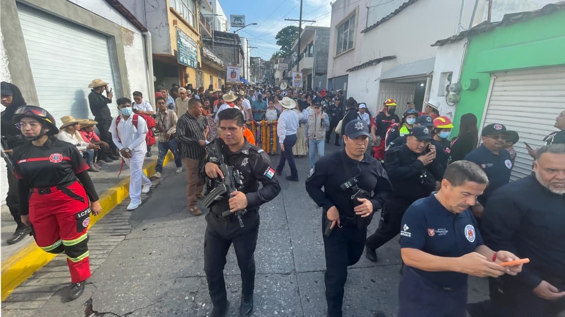 La gobernadora, la morenista Evelyn Salgado Pineda y el alcalde, el priista, Gustavo Alarcón Herrera encabezaron el Pendón. Lo hicieron de forma hermética, blindados. Caminaron cuidados por lo menos dos vallas de escoltas vestidos de civil y por soldados de la Guardia Nacional GN que todo el tiempo impidieron que la gente se les acercara.